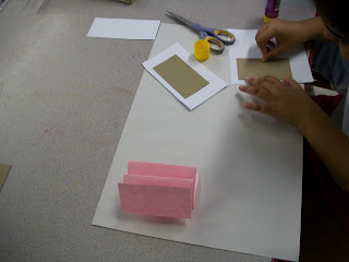 After a practice run, they took the marbled paper they had made last week and used it to cover their books.